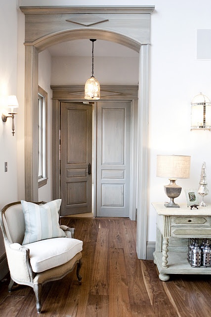 I am just smitten with the photo...the dark floors, crown molding around the entry and the doors.....so pretty!